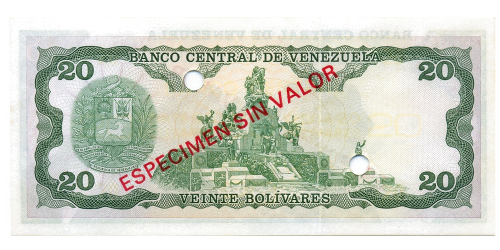 Espécimen Sin Valor Billete 20 Bolívares 1984