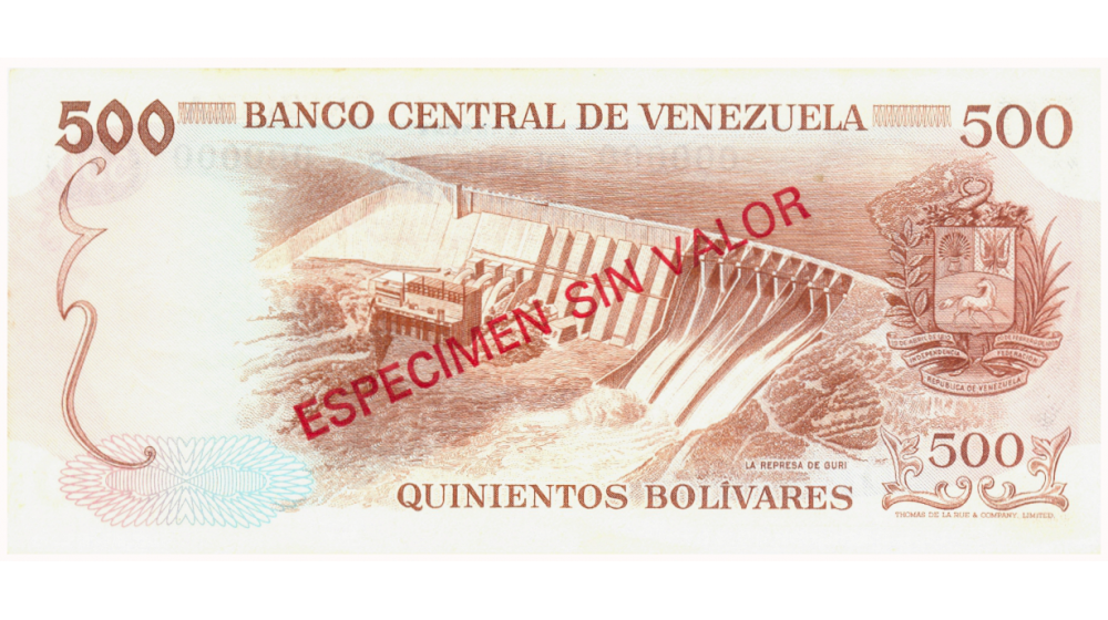 Billete Espécimen 500 Bolívares 1971/1972 El Guri
