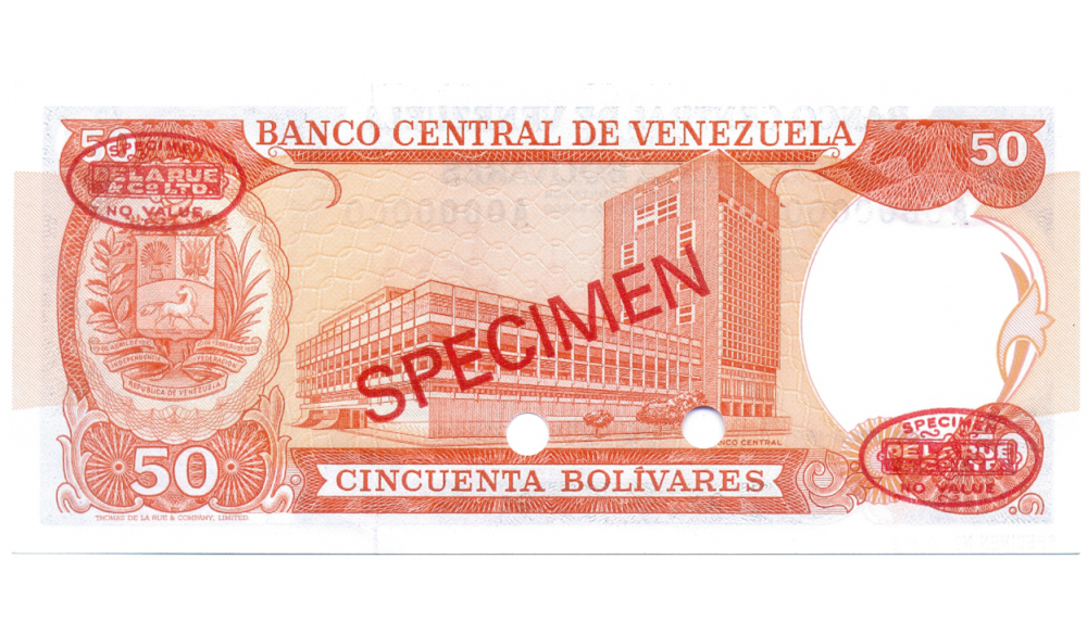 Billete Specimen De La Rue & CO LTD 50 Bolívares Nov 1972 #...