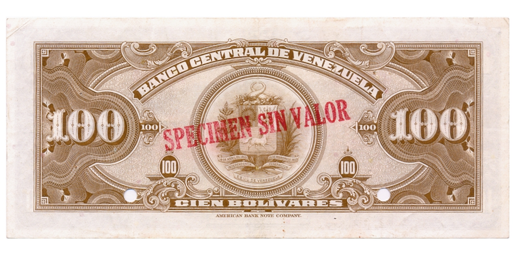 Billete Specimen Sin Valor 100 Bolívares 1940-53 E.E.U.U.