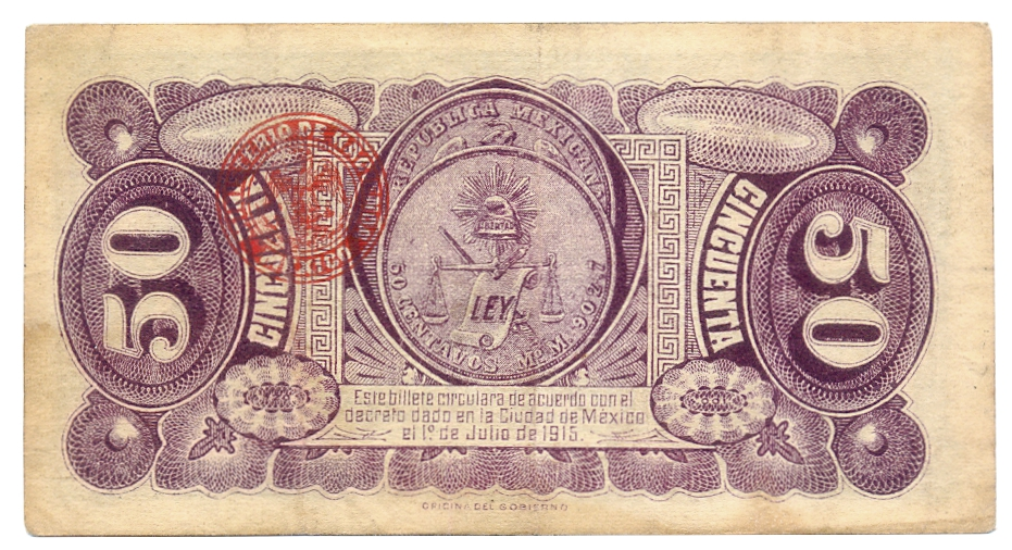 Billete México 50 Centavos 1915 Gobierno Convencionista