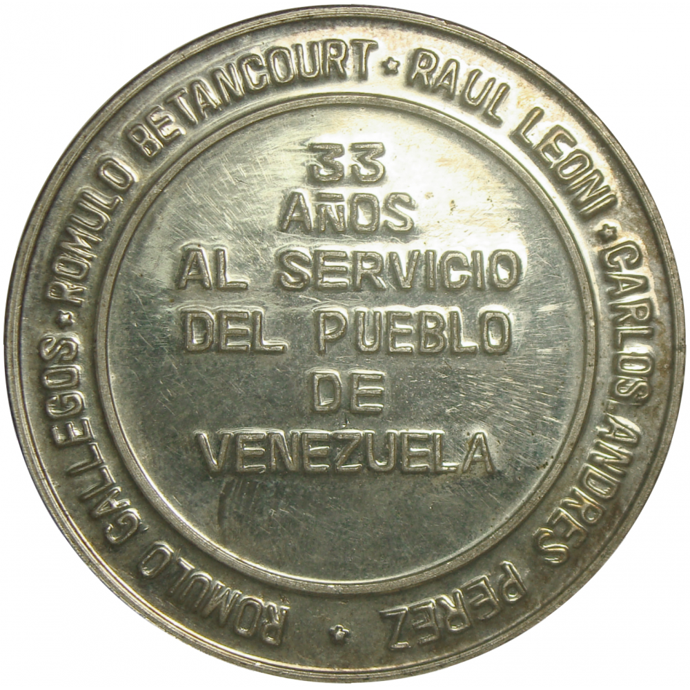 Medalla de Plata 33 años de Accion Democratica. VenezuelaMedalla 33 años de Acción Democrática - 1974