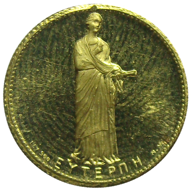 En el exergo, la inscripción: "ΕΥΤΕΡΠΗ", y "LEY 900"
