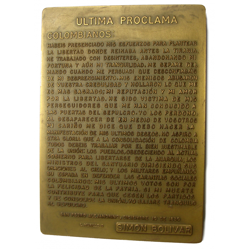 Medalla Placa 150 Años Muerte Simon Bolivar El Libertador