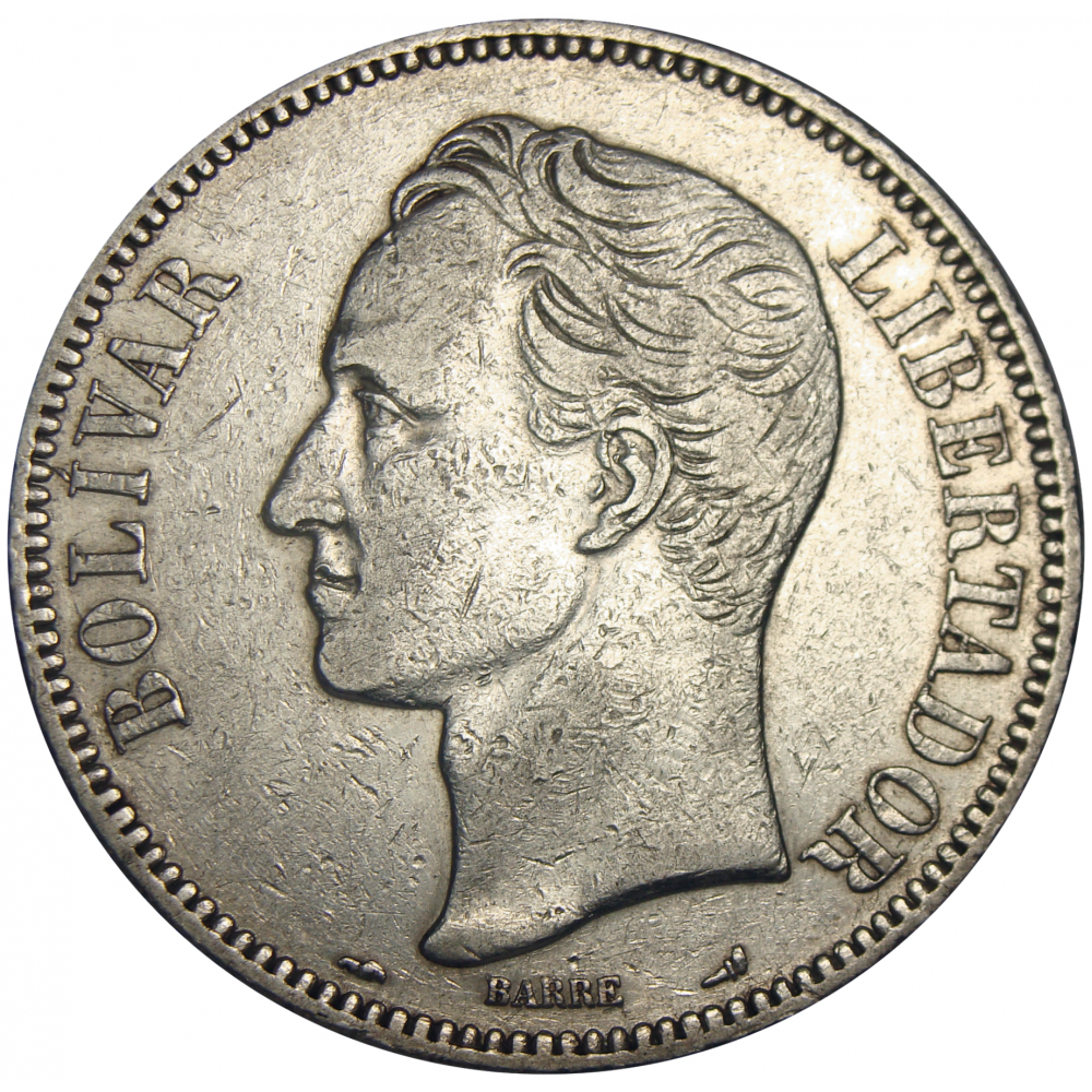 Moneda Plata 5 Bolivares Fuerte 1904 Dificil. Venezuela Moneda 5 Bolívares - Fuerte 1904