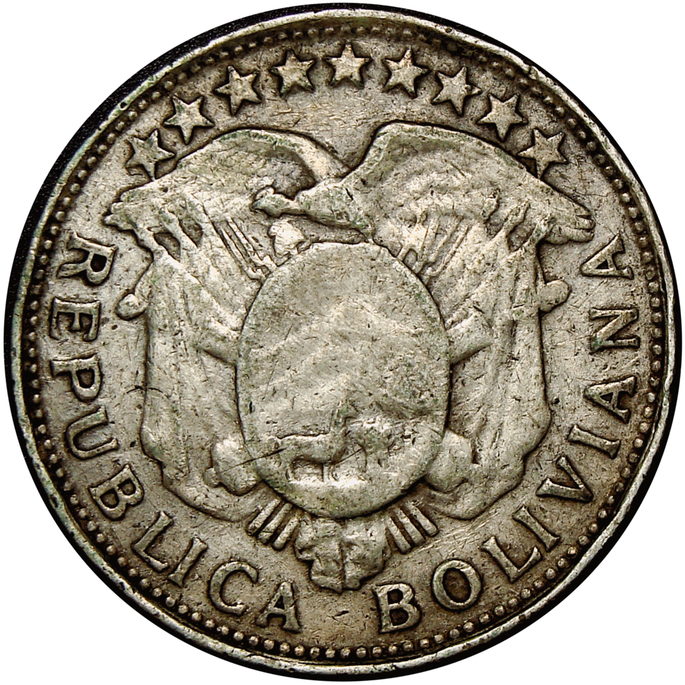 Moneda de Plata Bolivia ½ Boliviano - 50 Centavos 1903 . BoliviaMoneda Medio Boliviano -50 Centavos 1903