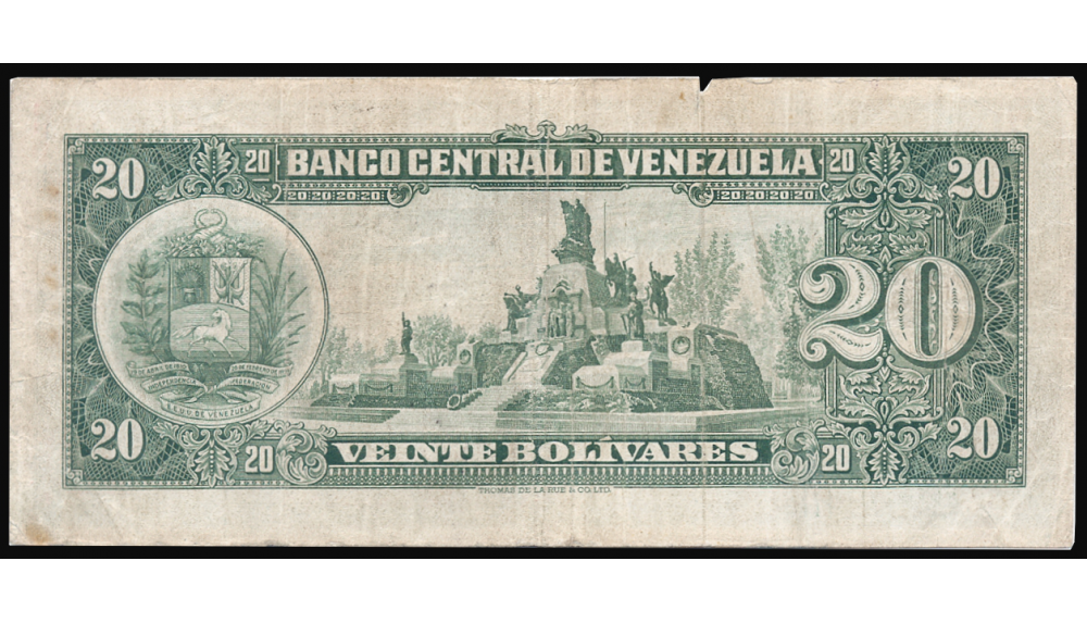 Anverso: A la izquierda, "VEINTE BOLIVARES".