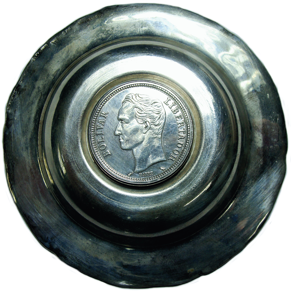 Cenicero de Plata con Moneda 2 Bolívares 1960 Souvenir 38,5.... VenezuelaSouvenirCenicero de Plata Peruanacon base Moneda 2 Bolívares 1960
