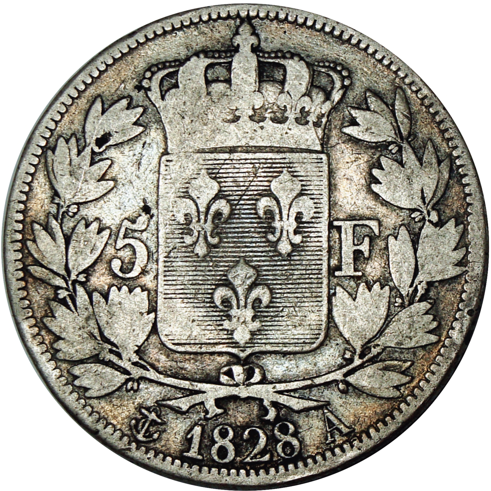 Francia Moneda de Plata 5 Francos 1828 A Carlos X. FranciaMoneda 5 Francos 1828 Ceca A - ParísCarlos X de Francia fue rey de Fran...