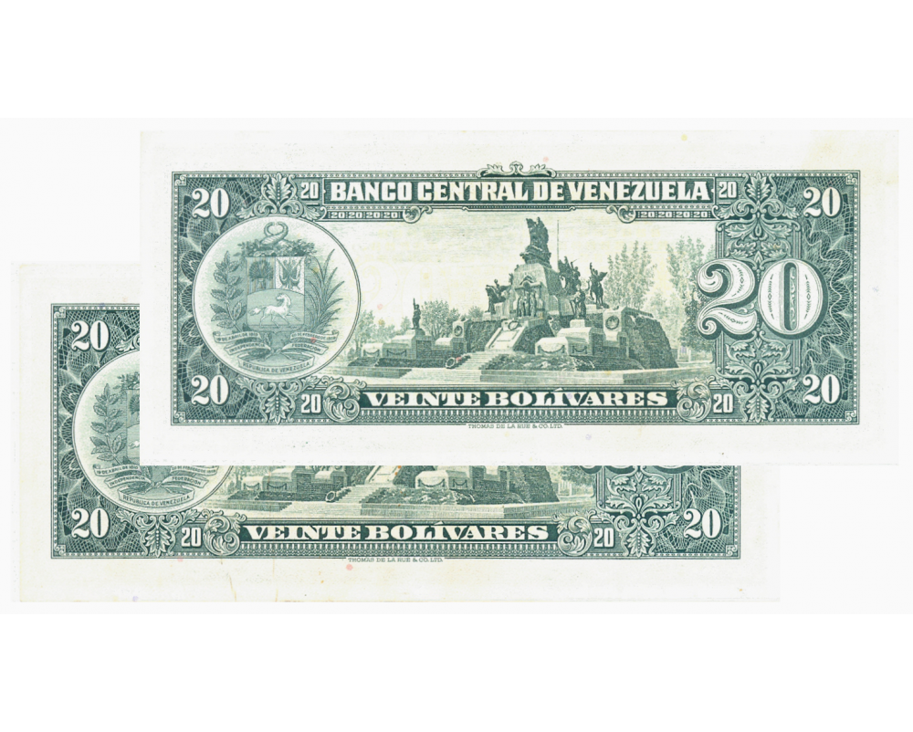 Pareja Billete 20 Bolívares 1960 V7 Seriales Consecutivos V.... VenezuelaPareja Billetes 20 Bolívares Marzo 11 1960Serie V - 7 Díg...