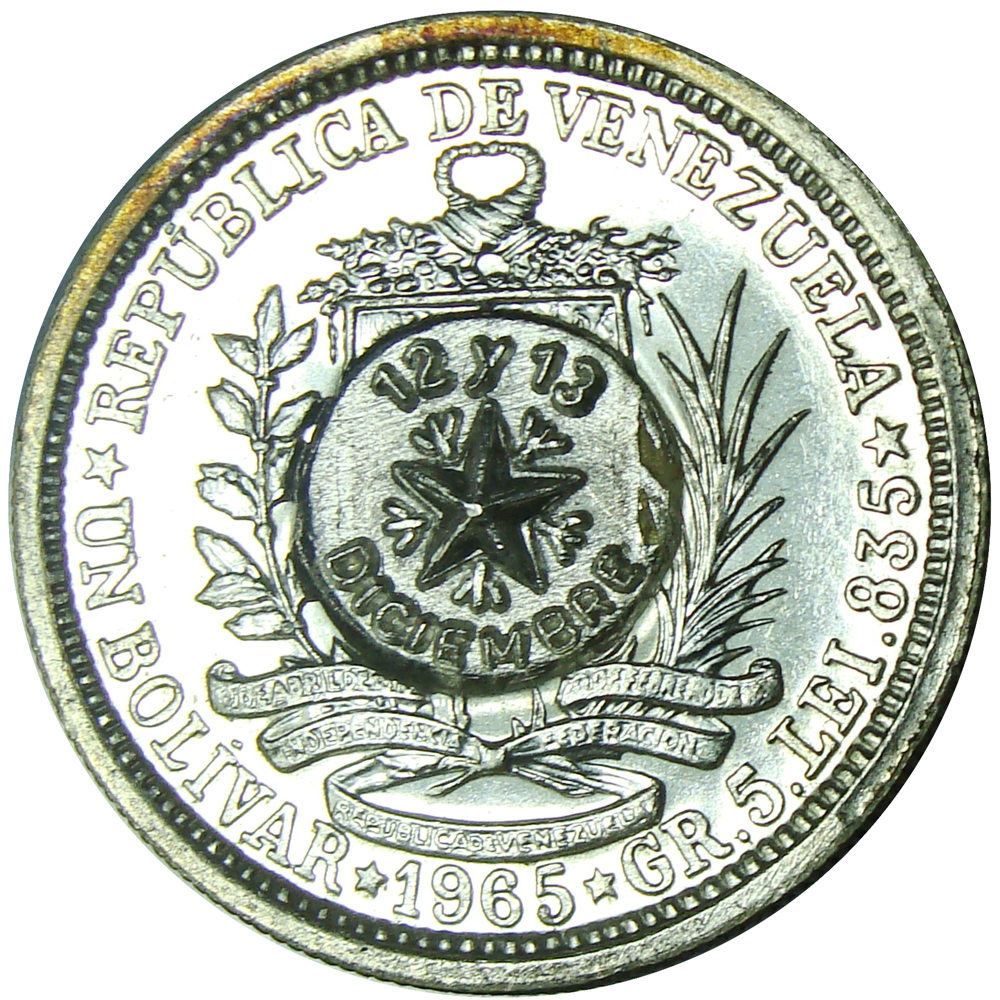 Descripción de la moneda de un Bolívar de 1965:
