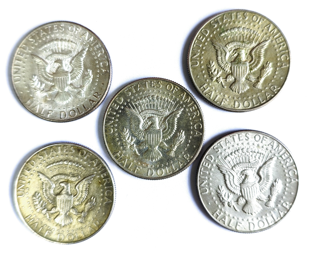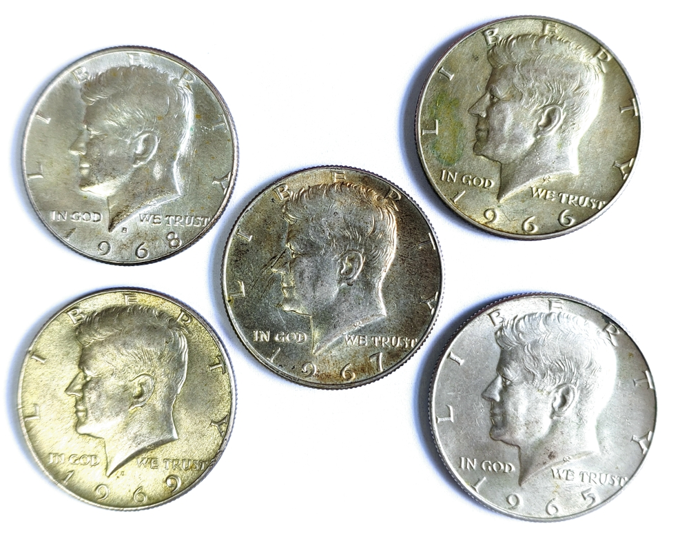 Set 5 Monedas en Plata EE.UU ½ Dollar 1965 a 1969 - Denver. Estados Unidos Set 5 Monedas de Circulaciónen Plata ½ Dollar "Kennedy H...